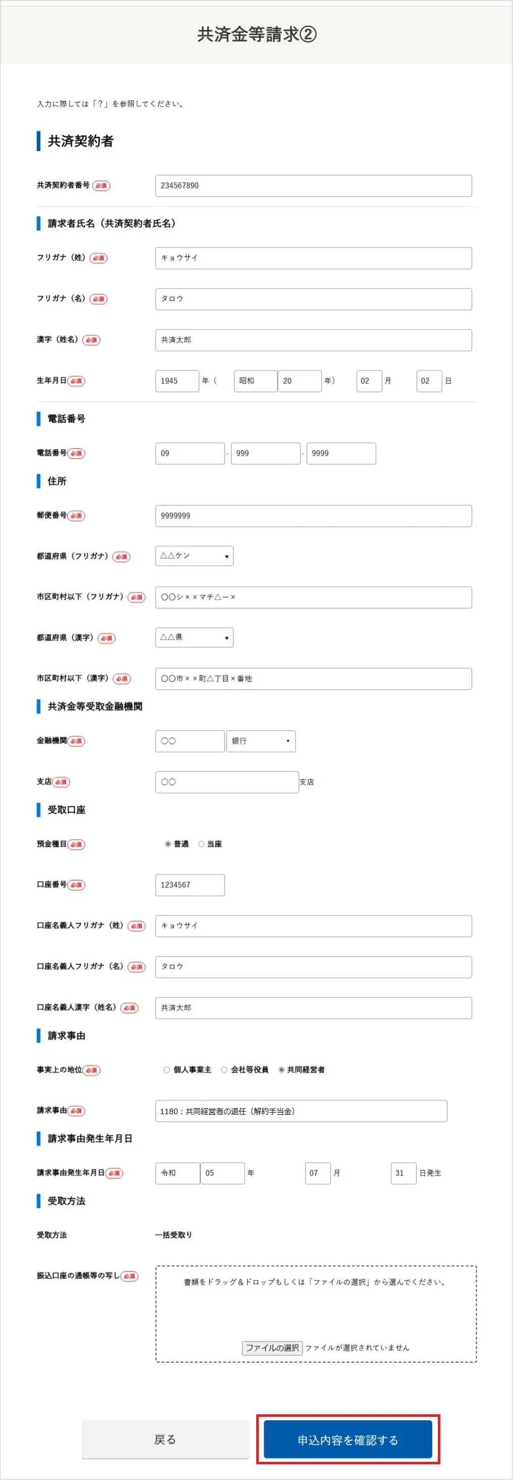 - [共済金等請求②]画面で必要事項を入力します。
