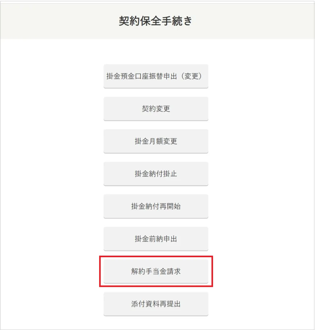 - [解約手当金請求]ボタンをクリックします。